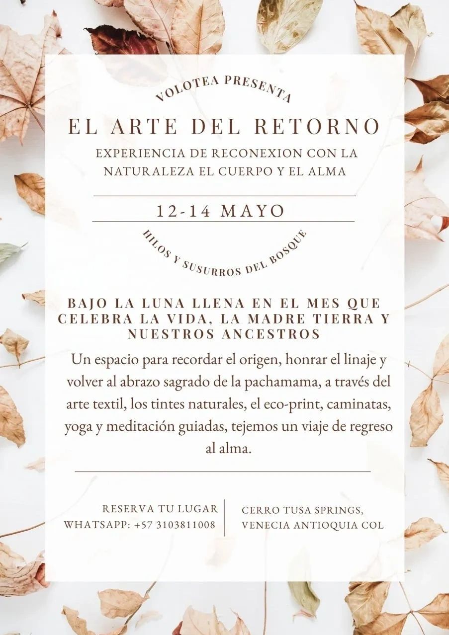 Aprenderás técnicas como el eco-print, el tinturado natural y el diseño textil sostenible, mientras te recolectas con la tierra, contigo mismo y con los ciclos de la vida