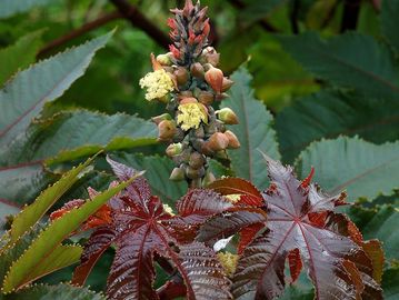 La higuerilla (Ricinus communis) es rica en taninos, lo que la hace ideal para el ecoprint. Sus hojas dejan impresiones definidas en tonos verdosos y ocres sobre algodón y seda, sin necesidad de mordientes agresivos. Aunque es considerada una especie invasora en muchos lugares por su rápida propagación, su uso en el arte textil se convierte en una acción estratégica en pro de la naturaleza, transformando una amenaza ecológica en una aliada creativa.